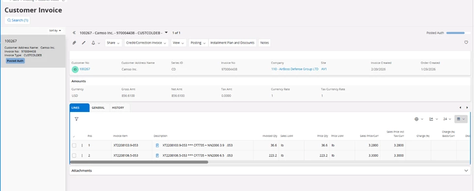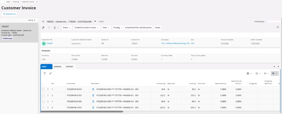 The problem is this customer needs 2 tax codes per line, and we have created a correction invoice.