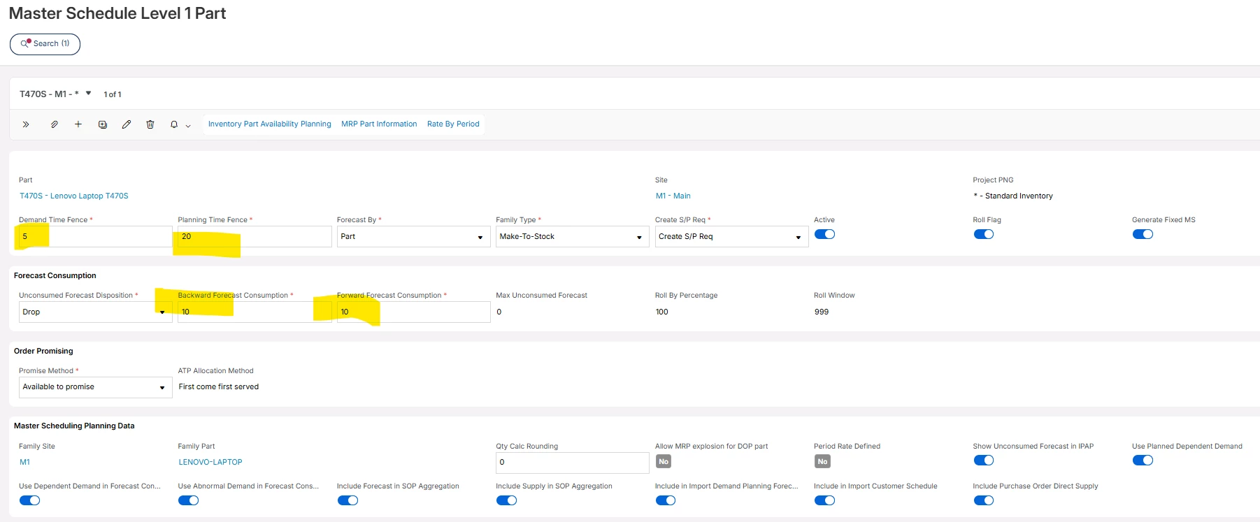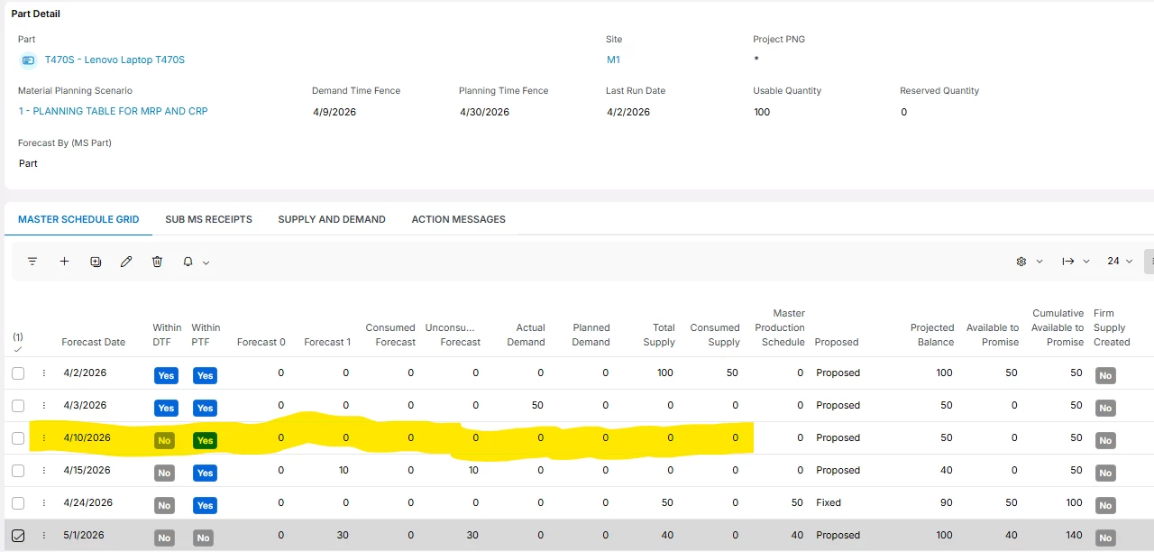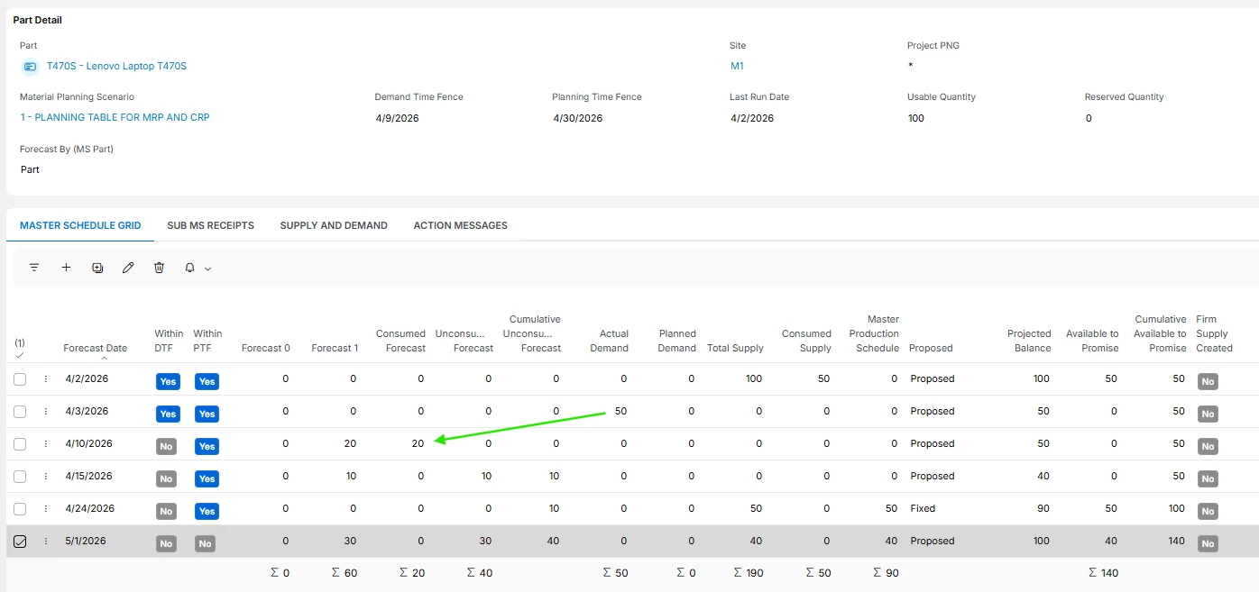 If an MS1 part has forecast from Demand Planner within the Planning Time Fence, should a delivered Customer Order consume the forecasted amount within the PTF? Should the forecast from Demand Planner even be in the Planning Time Fence?