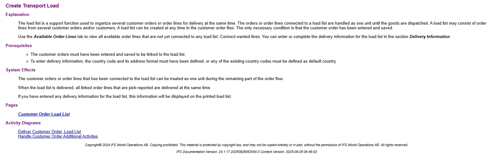 This is a development change introduced from 25R1 onward by the IFS R&D team. The Load List functionality is now fully managed through the Shipment functionality. A Load List ID is only relevant after picking and shipment planning, and it is no longer considered part of normal customer order follow-up.
