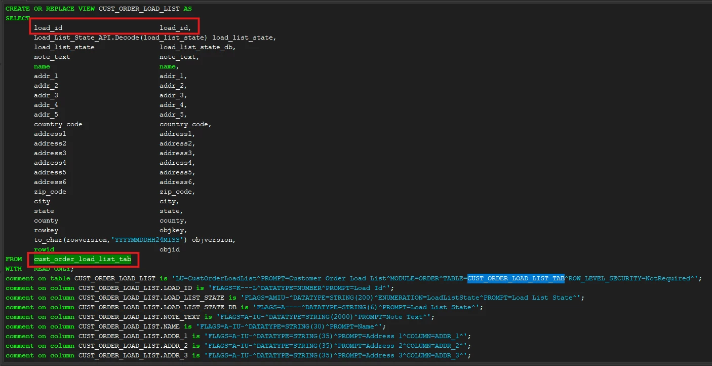 I discussed this issue earlier this year with IFS Product Development Team and I was able to locate the “Load List ID” in the App10 database and in versions up to 24R2 as the “LOAD_ID” column. Up to version 24R2, there was a page called “Customer Order Load List” and a corresponding table named “CUST_ORDER_LOAD_LIST_TAB.”