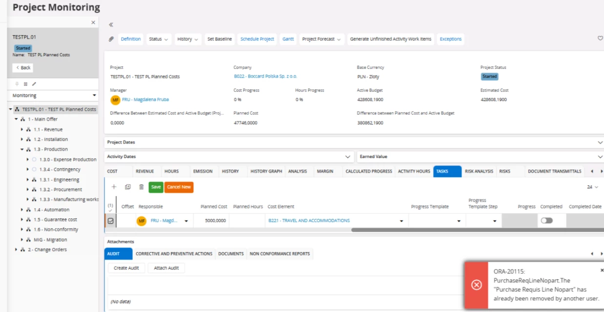 While adding new task , am facing the below error. what is the reason for this error ?