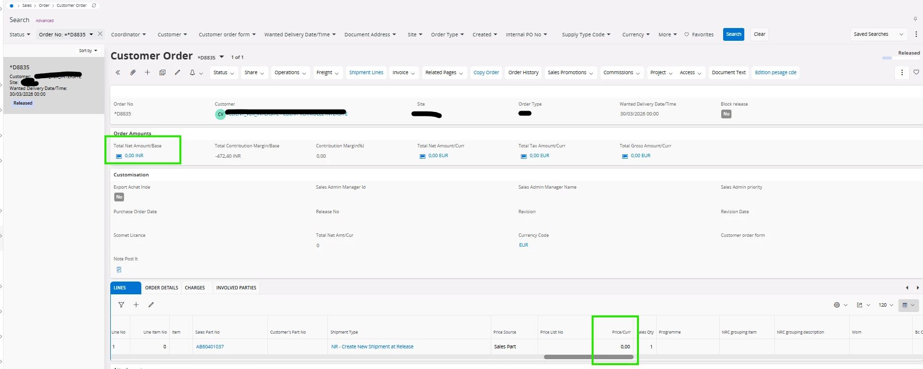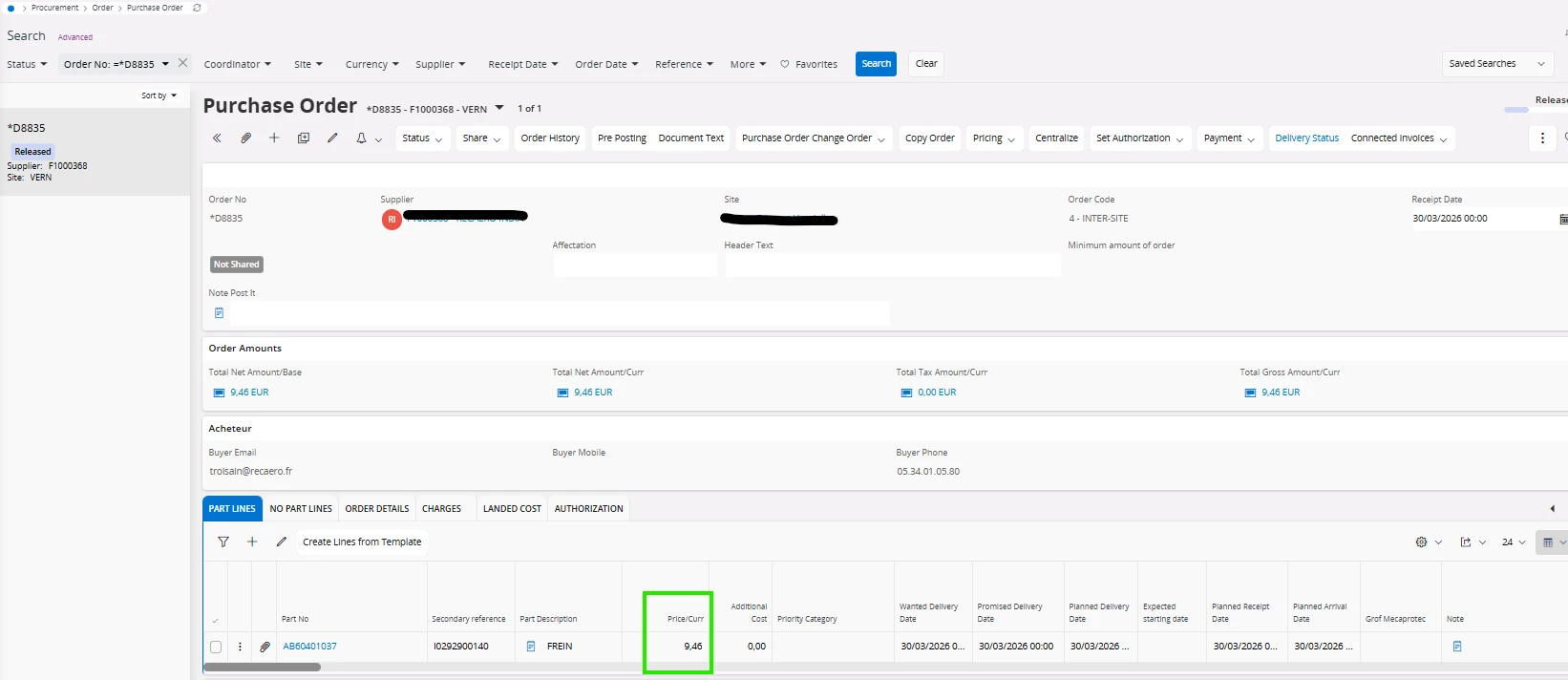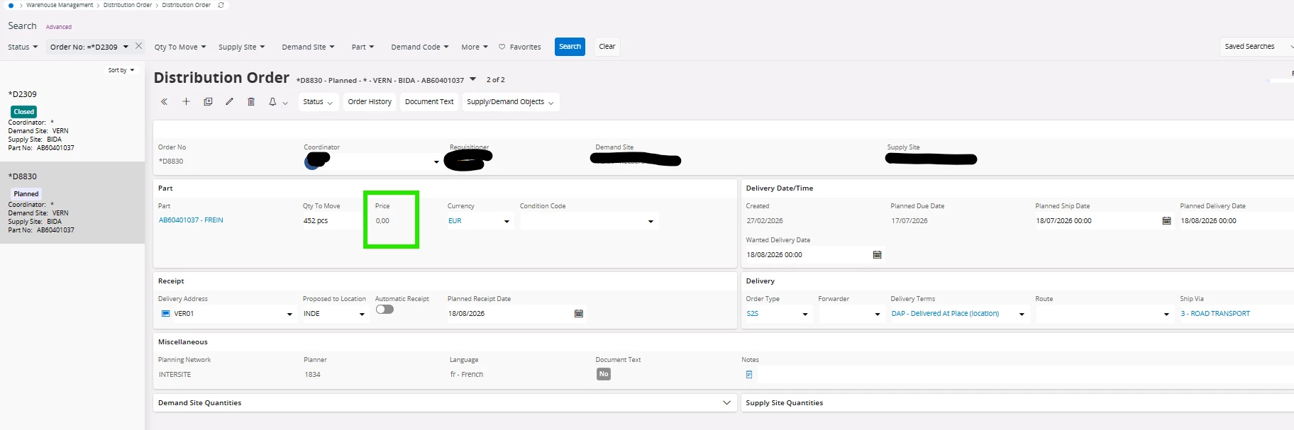 I need help. The price of my supplier item link is no longer appearing in my distribution order, and I want this price to be transferred to the purchase order and sales order, as in the intercompany flow.
