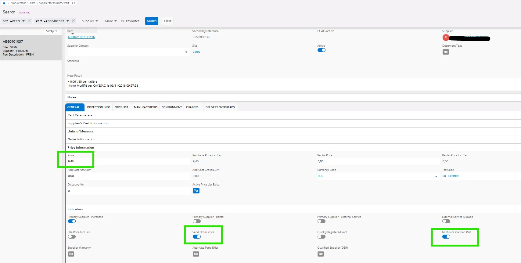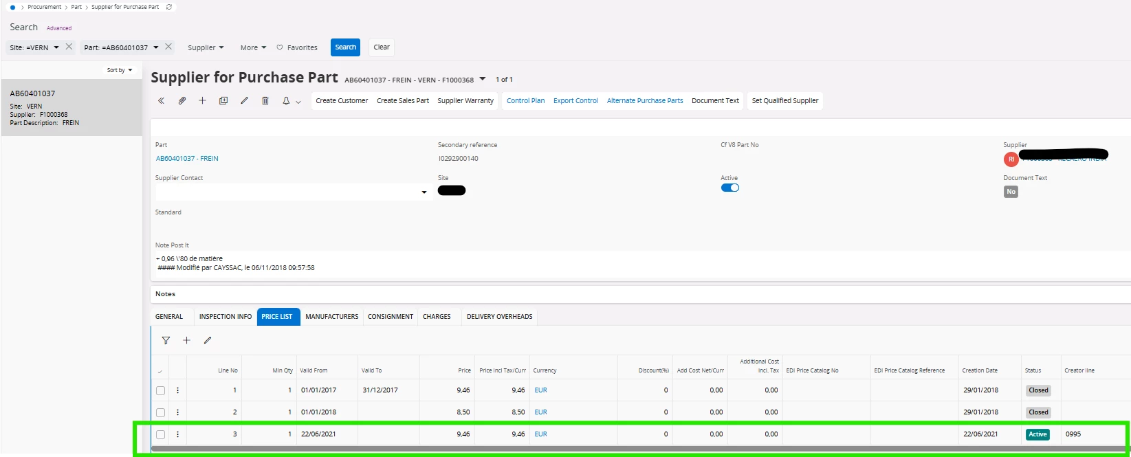 Supplier for purchase part