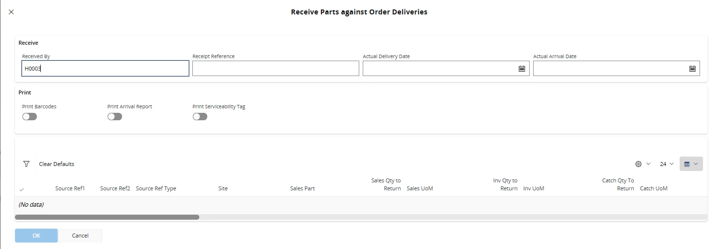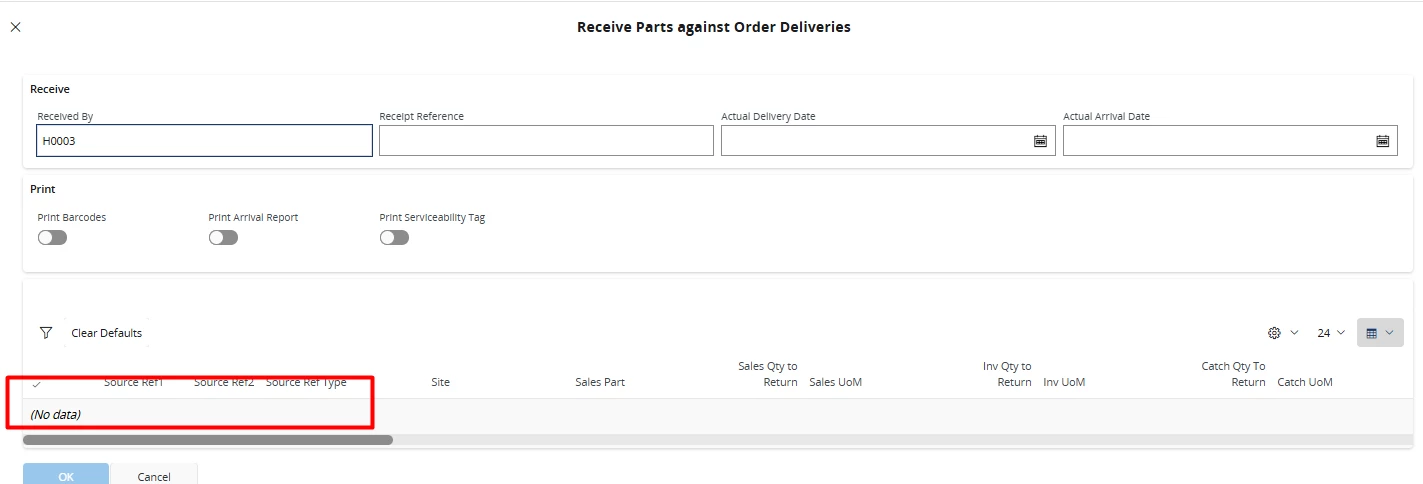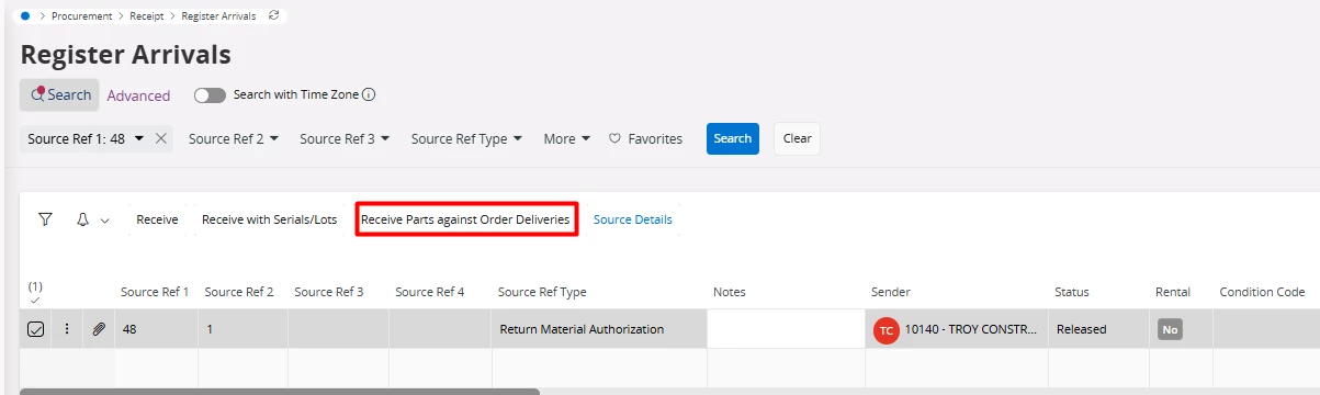 - My assumption was I can create a RMA (Return Material Authorization) and return the part against the order that I delivered. But when I do that its always empty.