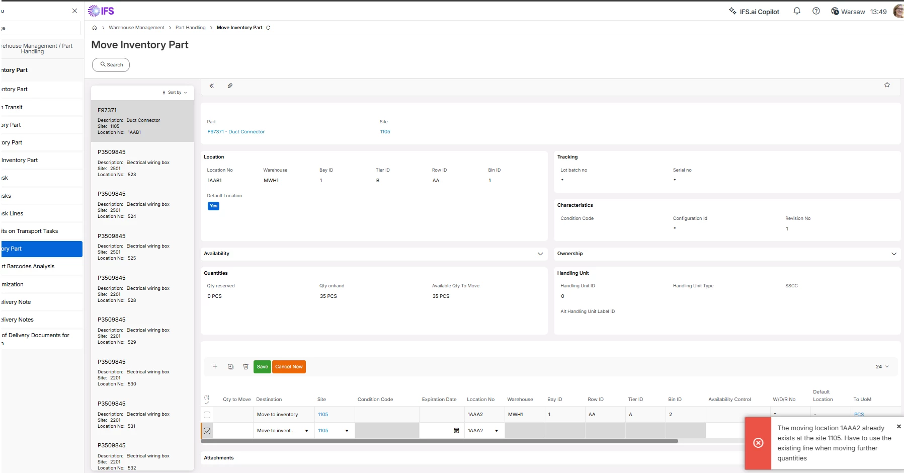 Error_SYS.Record_General(lu_name_, 'CANNOTINSERTNEWLINE: The moving location :P1 already exists at the site :P2. Have to use the existing line when moving further quantities', location_no_, contract_); END IF; END IF