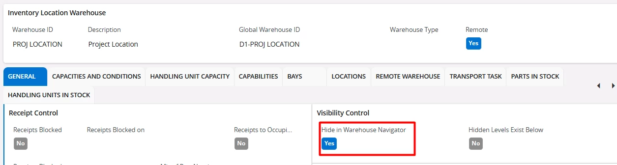 Is there any possibility to hide a remote warehouse from the “Ship Goods and Asset” view. We are using remote warehouse as a project location. Once the project is over we ideally wants to hide/remove from the usage.