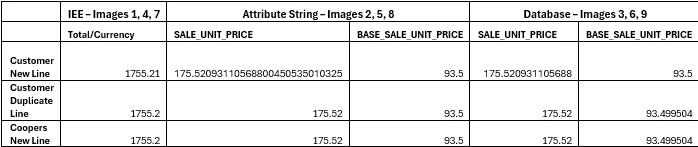 It looks like our environment is providing a rounded SALE_UNIT_PRICE and the rounding variance is then being reflected back into the BASE_UNIT_SALE_PRICE (see 93.499504 above), whereas our Customer’s environment is showing the SALE_UNIT_PRICE as the non-rounded figure, and fixing the BASE_SALE_UNIT_PRICE at the original value of 93.50.