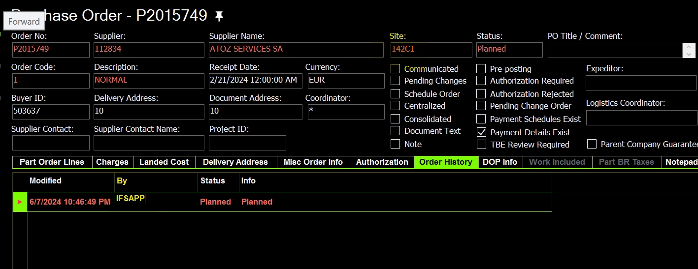 IFS Taking IFSAPP user ID in PO history