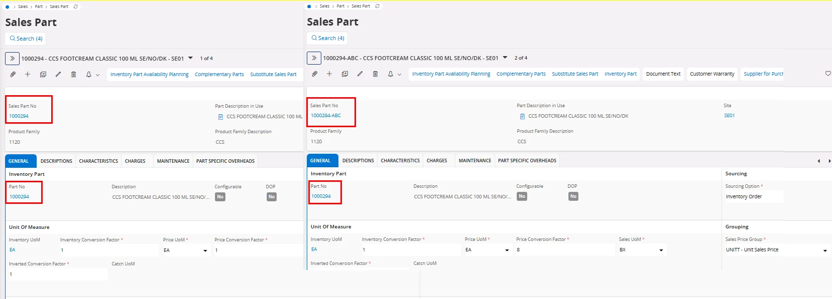 My issue is, that I´m not able to add the second part to Customer Agreement. First issue is that Cloud not allows me to add the Part int Sales Part Base Price. And it is probably because of the same Inventory Part.
