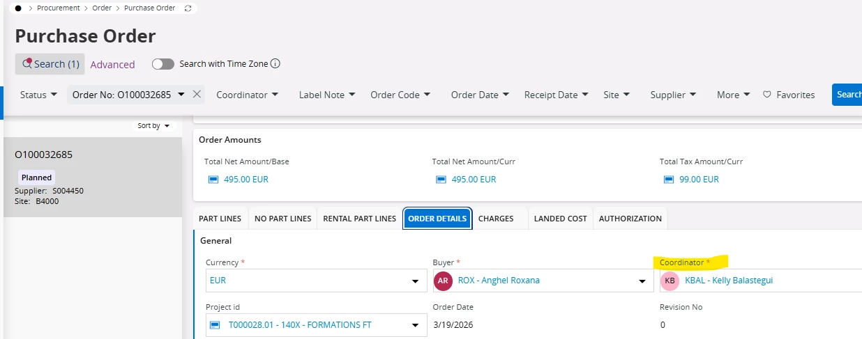 How to check in the IFS application that this for this particular PO and Project - what coordinator to be added.