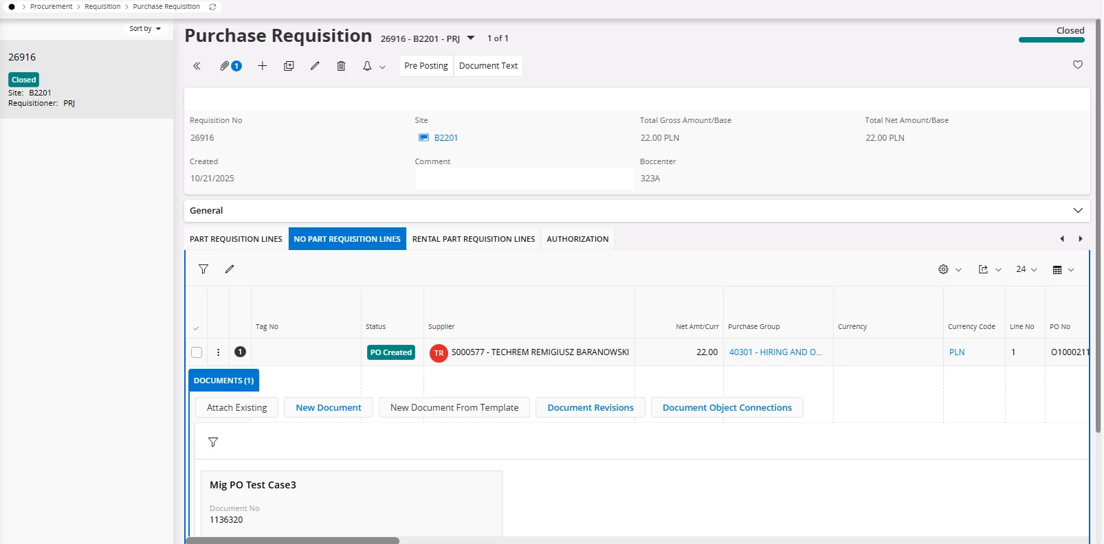 Is their any screen to view upload or removal of documents from the PR and PO screen.