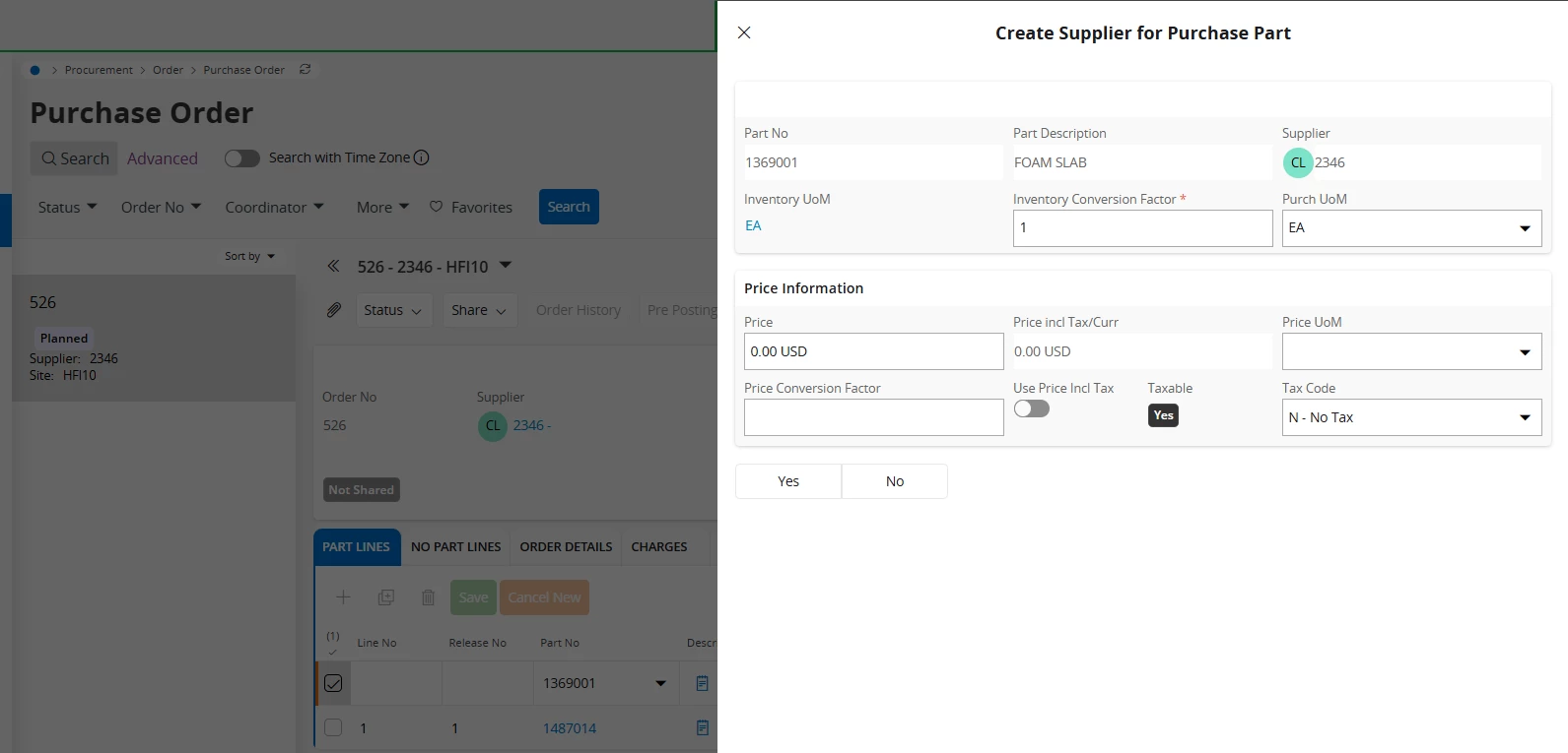 Hello IFS Community, i hope somebody can guide me with the following, when a user adds a line in the purchase order, if the Part/Supplier relationship is not in the Supplier for Purchase Part, the system will ask and let the user enter that entry into the Supplier for purchase part.