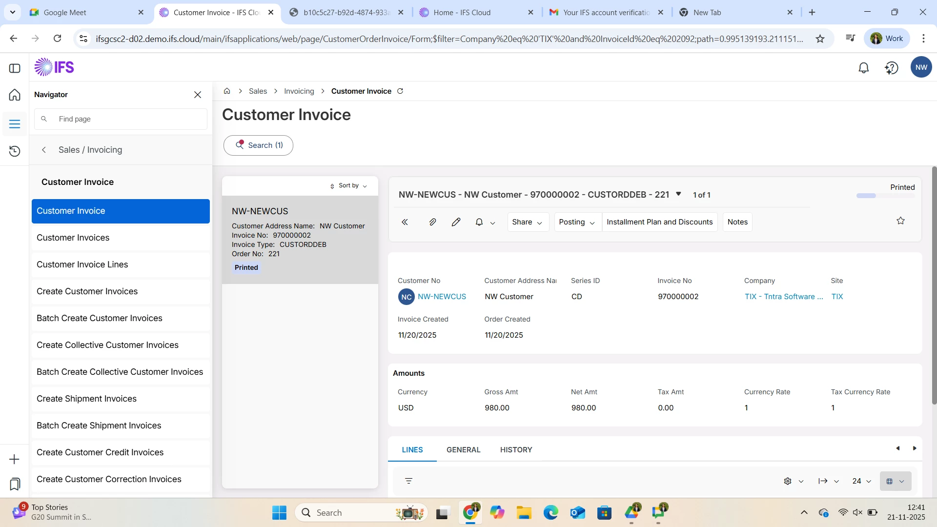 ORA-20105: Invoice.ACCERROR1: Error (User group SC is not connected to voucher type with function group F for accounting year 2025 in Company TIX) occurred while booking Invoice AD 40000003.