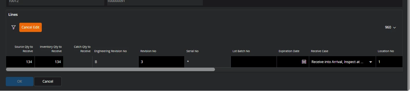 When performing a receipt of an order based item use the Receive with Serial/Lot no button, we were used that the Order Nr would be filled in by default in Lot Batch No field