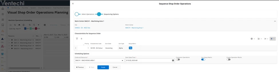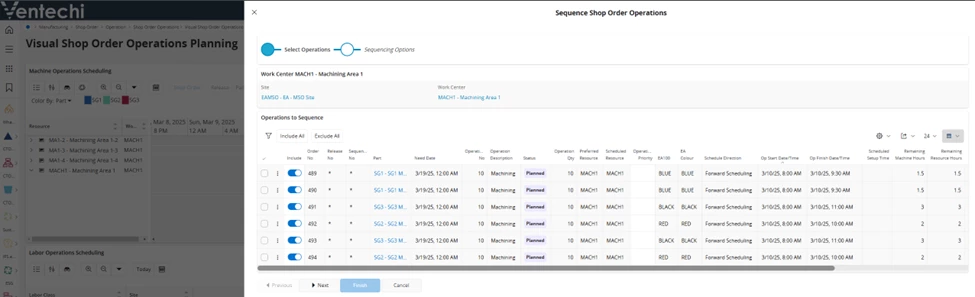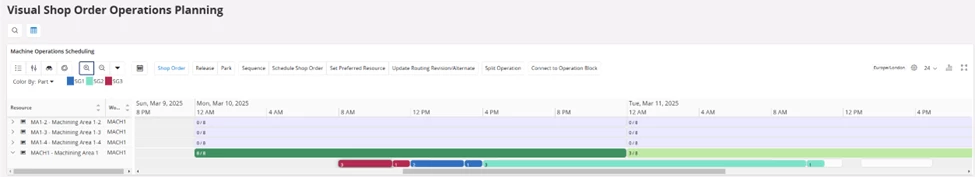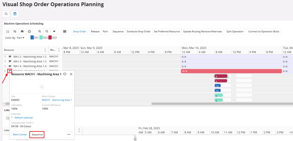 Then, view the Shop Orders in Visual Shop order Operations Planning and ‘Sequence’ the Work Center Resource