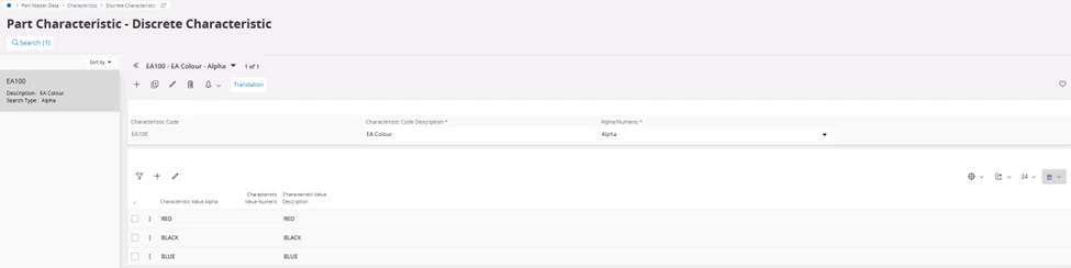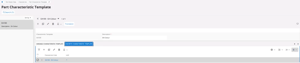 Then add the Part Characteristic Template to the manufactured inventory parts, and add the relevant values for the part (e.g., Characteristic A and Width = 10cm, etc)