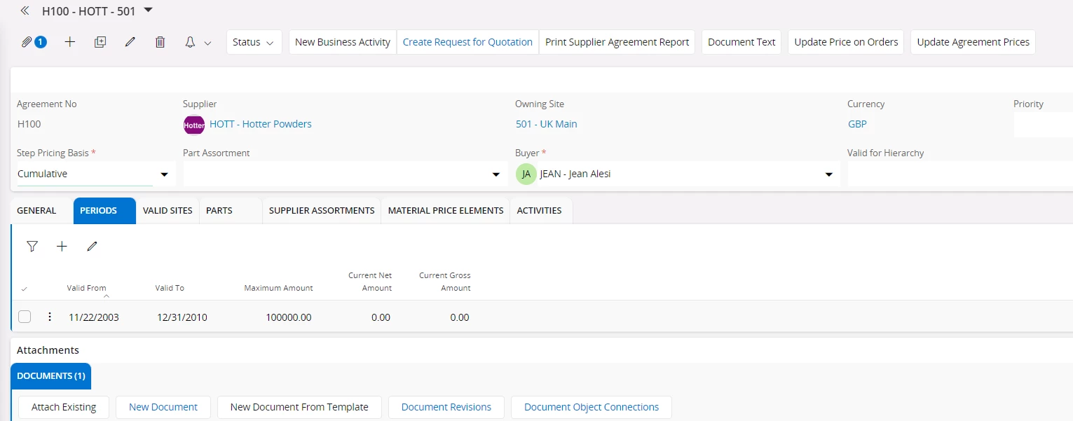 Can you please let me know the product version that you’re working? I think you can use a Supplier Agreement to control the validity period for a purchase part. By linking a Purchase Part to a Supplier Agreement, the system automatically knows the supplier is valid only within the agreement’s date range.