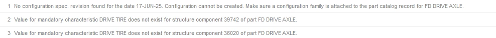When running a interim demand header I get the following error. I made sure to have the child part FD DRIVE AXLE and parent part FDM300 have a phase in date before 06/17/2025, but the error still shows up in IFS apps 10
