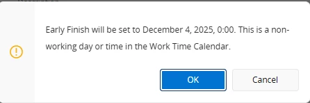 However when saving the record in Aurena the system will perform the validation on date time level and generate a warning message like this: