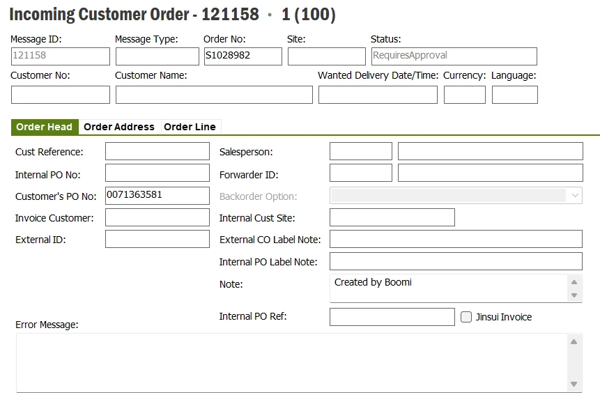 We work with IFS Apps10 and I'm trying to set up a Boomi integration for EDI Customer Orders via REST API calls.