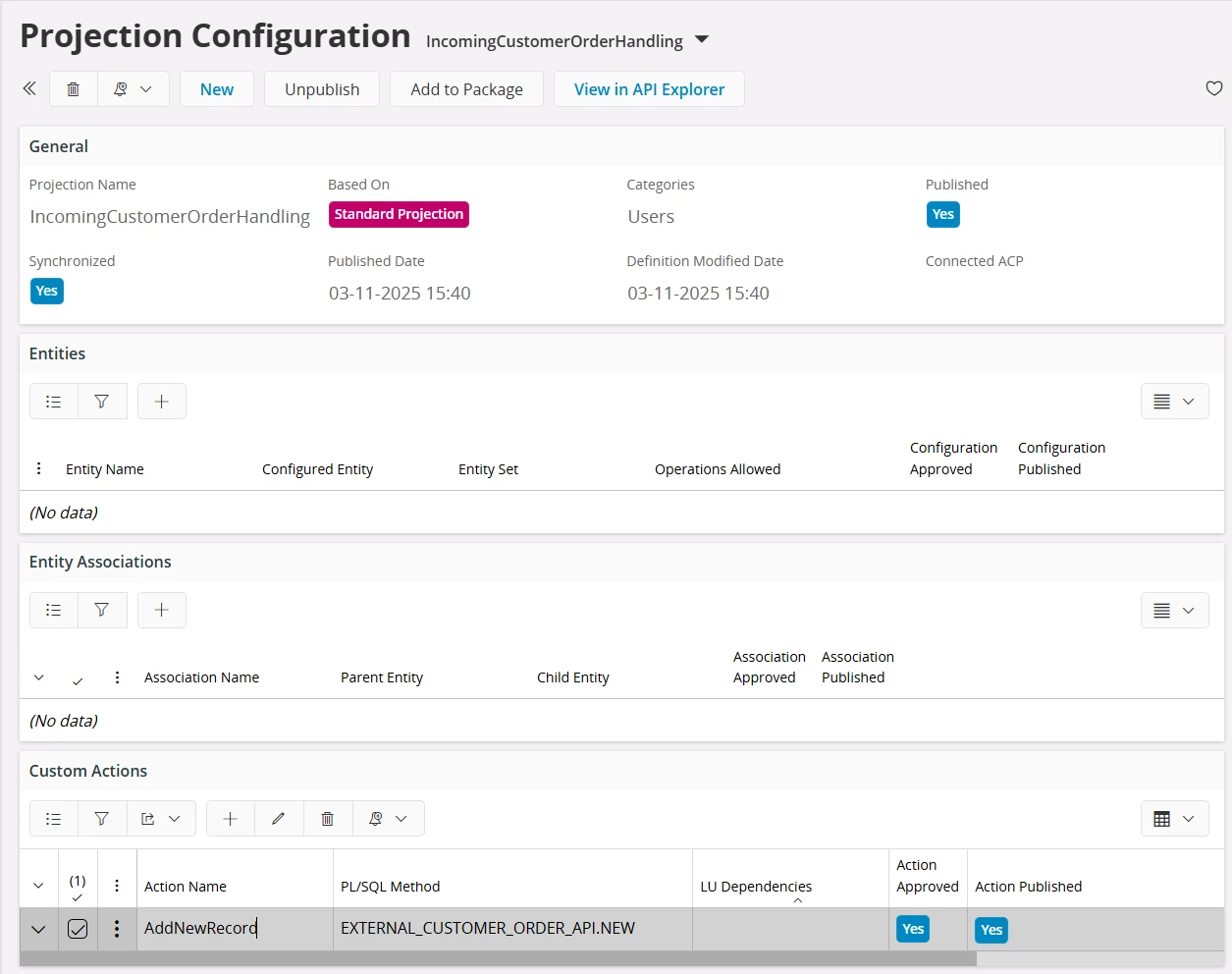 However, the projection IncomingCustomerOrderHandling does not offer a POST method to add a new record. So here my journey stops.