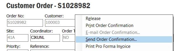 And that enables the “Send Order Confirmation” option on the Customer Order header.