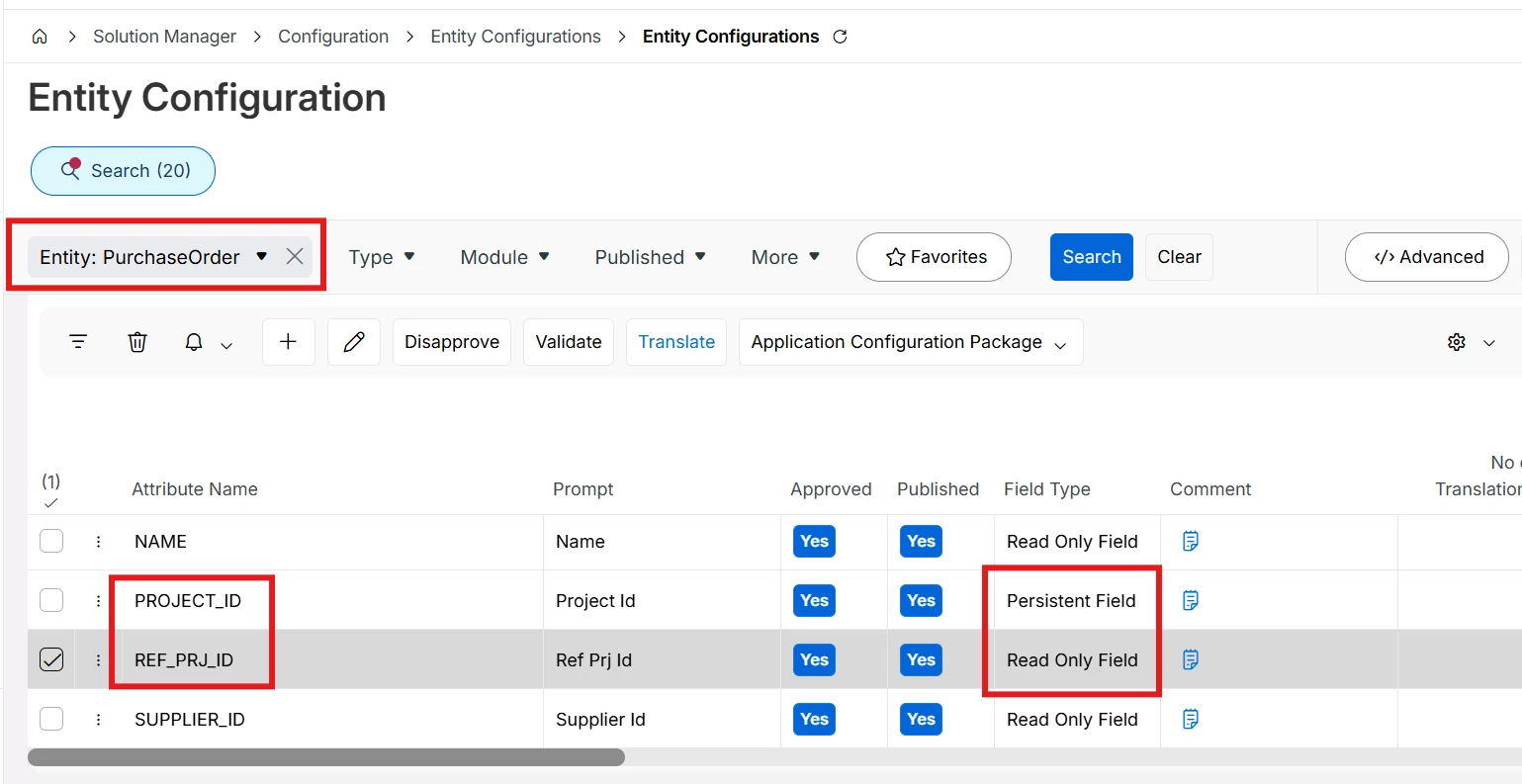 In IFS app10 when we call a quick report in a custom menu we can map Project_id to CF$_project_id, even if cf$_project_id is a reference field. In Cloud this still works but opens the quick report with the objkey instead.