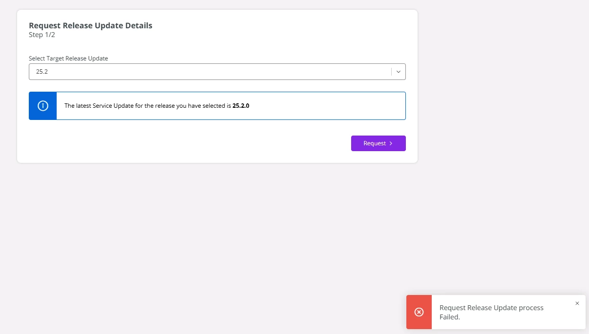 I tried to request a release update from 25R1 to 25R2, but it failed.